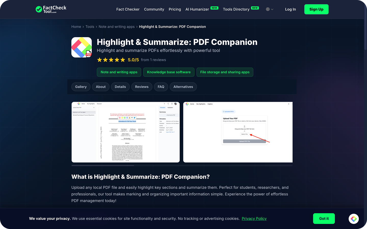 Highlight & Summarize: PDF Companion on FactCheckTool.com