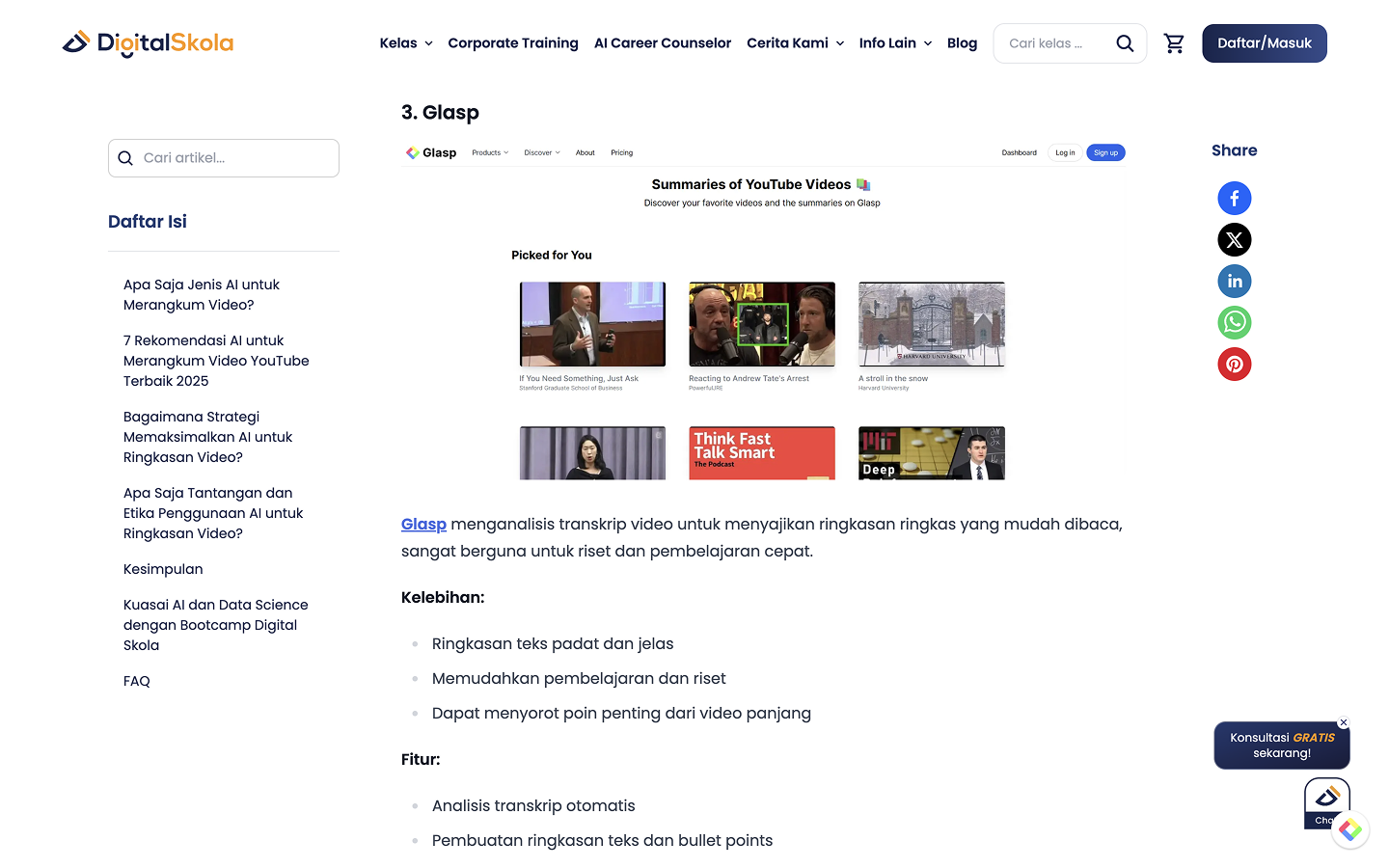 7 Rekomendasi AI untuk Merangkum Video di YouTube dengan Cepat (7 AI Recommendations for Quickly Summarizing YouTube Videos) on Digital Skola
