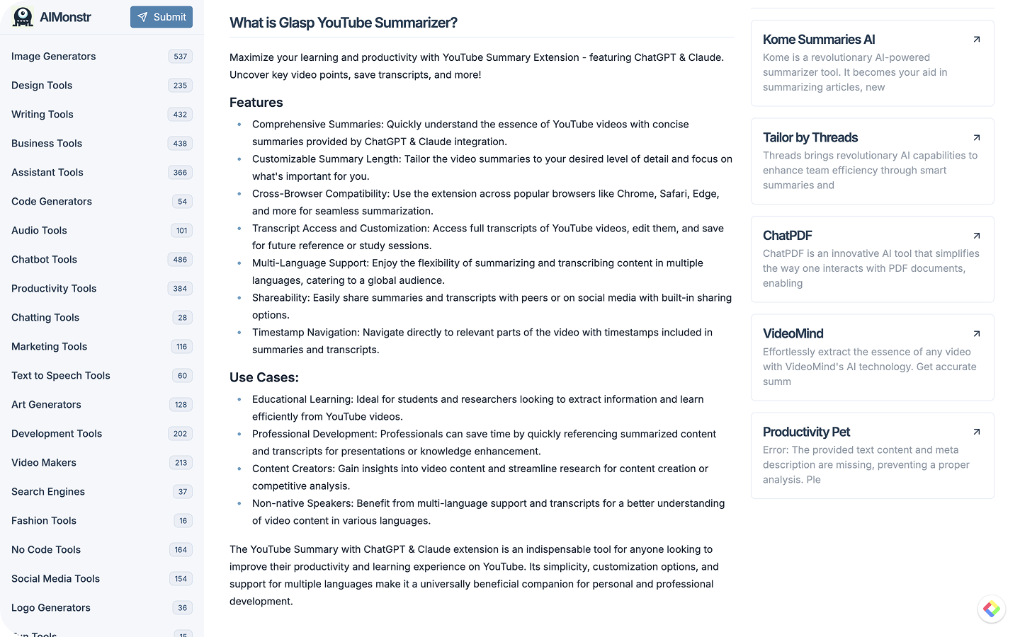 Glasp YouTube Summarizer on AIMonstr