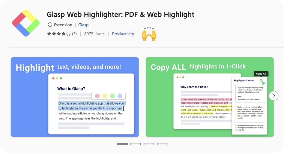 With the Glasp mobile app, you can highlight and organize your favorite content anytime, anywhere. Stay productive on the move and never miss an insightful quote.