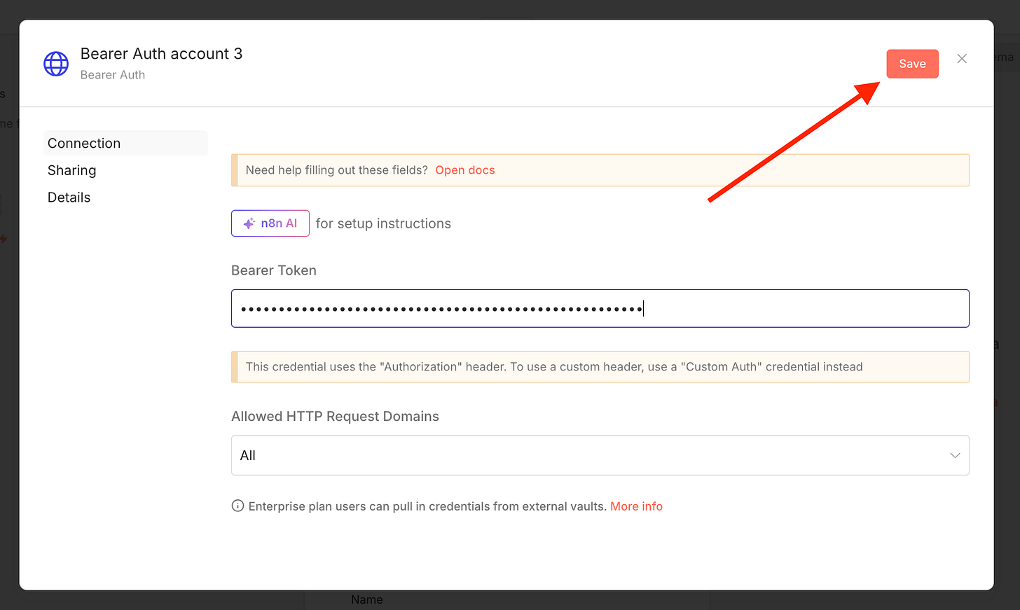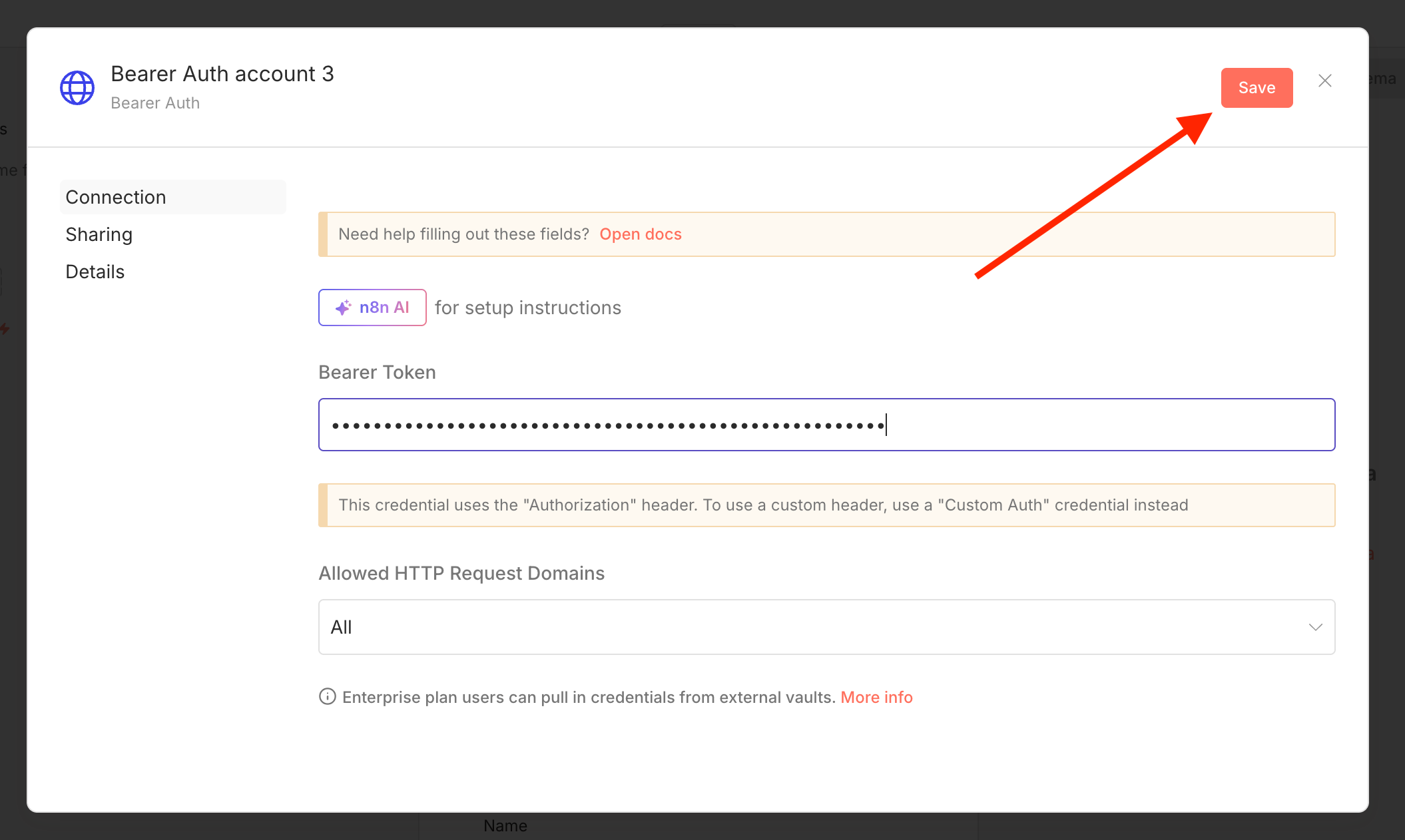 Click the Bearer Auth dropdown and select "+ Create new credential"