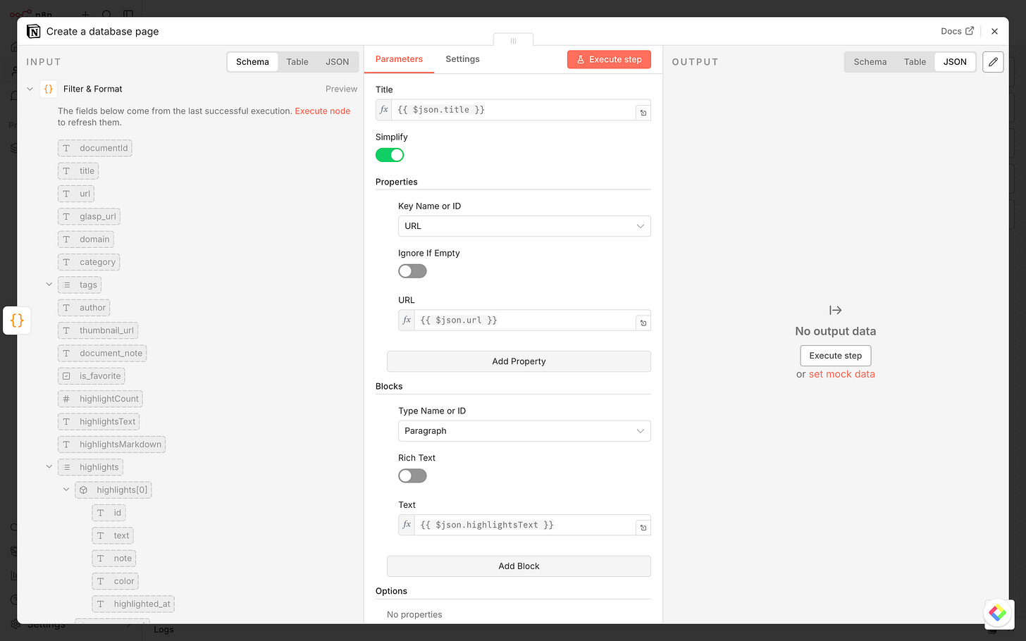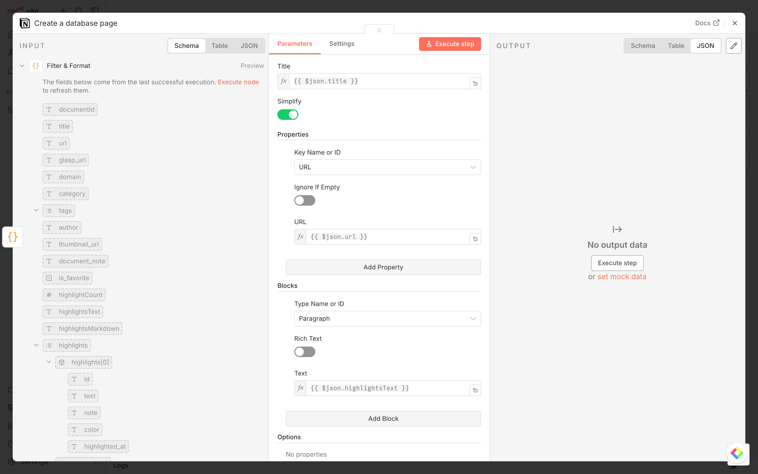 {{ $json.url }}Highlights (as a Block):