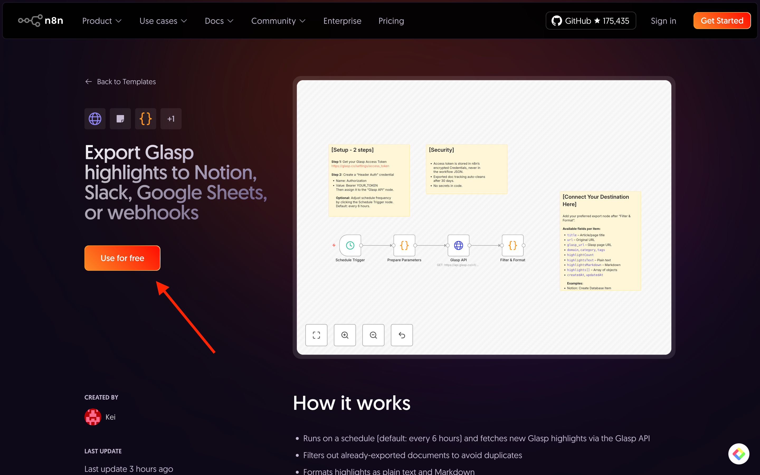 Go to the Glasp Highlights Export template on n8n