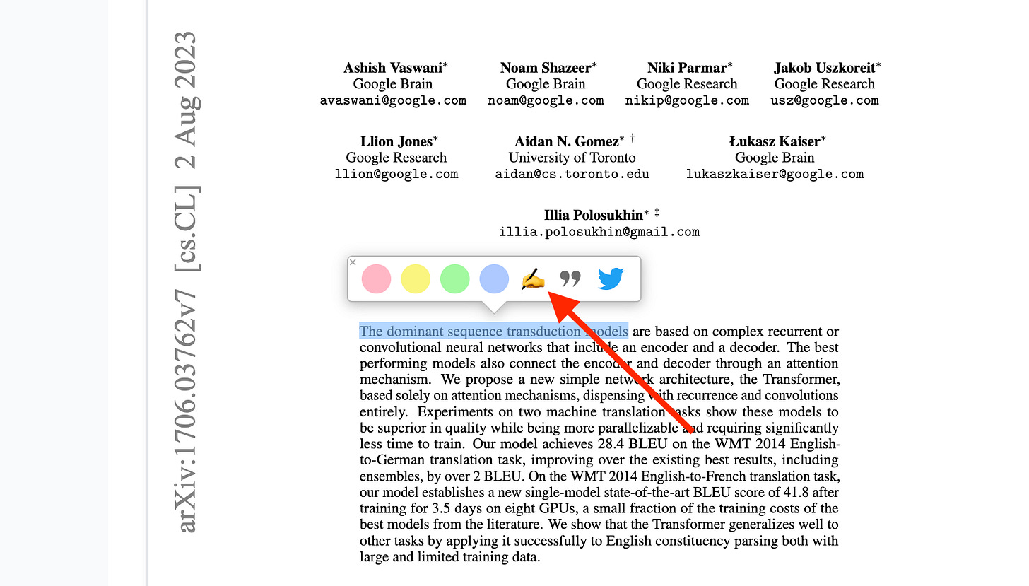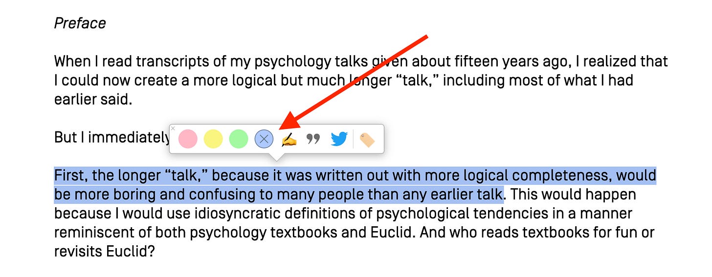 You can also add notes to each highlight. Click the pencil icon in the popup to write your note.