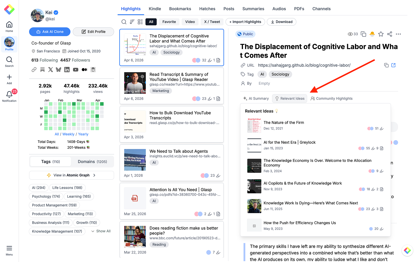 Did you know Glasp now surfaces highlights from articles you’ve read in the past that are relevant to what you’re currently viewing? With Relevant Highlights, you can instantly connect new content to your existing knowledge — making every reading session smarter. Try it on any highlight page today.🟩 PDF Upload Limit Increased: