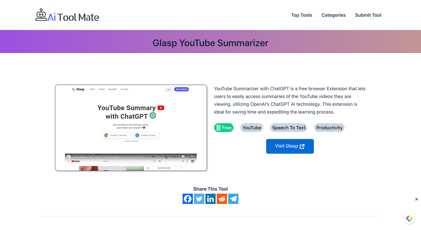 Glasp YouTube Summarizer on AiToolMate