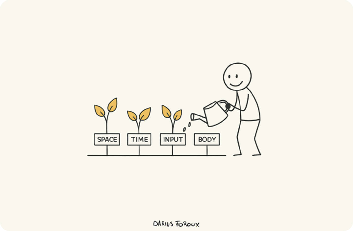 Summary: Focus isn’t built with hacks—it’s a byproduct of lifestyle. Foroux’s STIB framework shows how to design your days so focus becomes effortless: Space (decluttered, quiet, phone away), Time (protected daily deep-work block), Input (high-quality info, minimal feeds/news), and Body (sleep, light, movement, hydration).